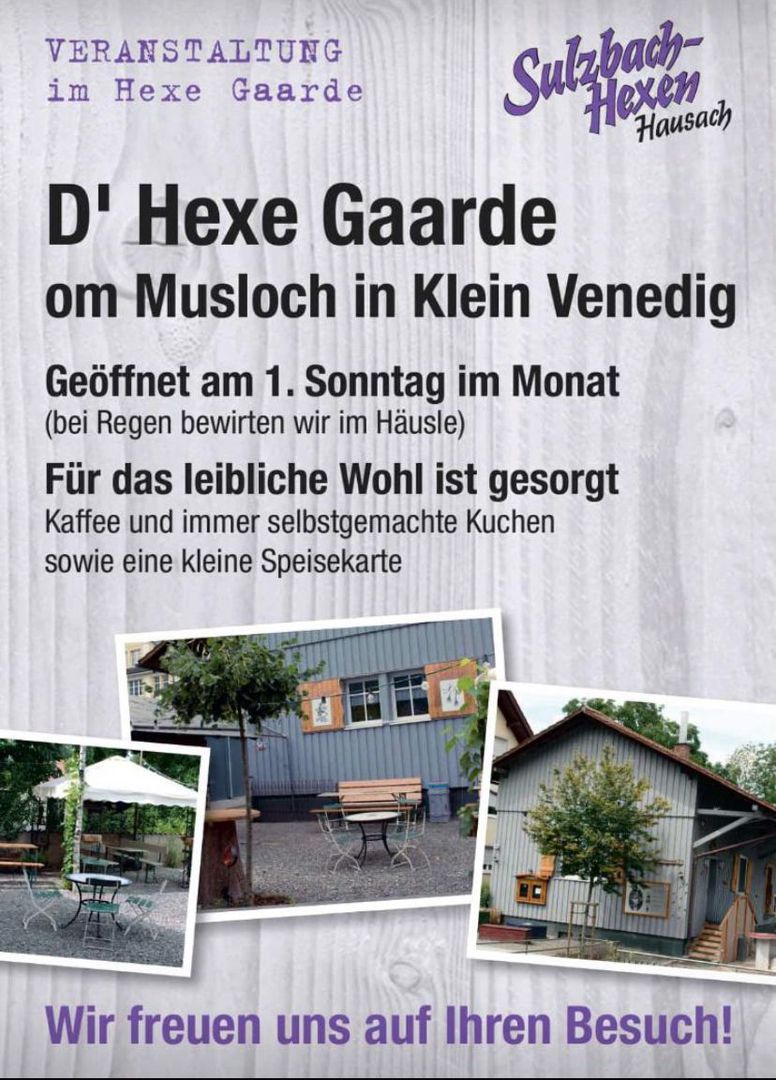 Am Sonntag, den 03.10.2021 laden wir Musiker der Sulzbach-Hexen Sie ein zu einem Musloch-Kaffee mit Live-Musik im Hexe-Gaarde in Klein-Venedig. Von 14:00-19:00 Uhr bieten wir Ihnen Kaffee und