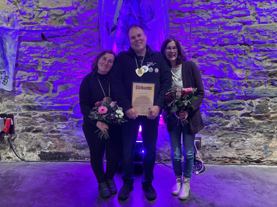Am 6. Januar 2026 durfte unsere Zunft einen ganz besonderen und zugleich bewegenden Moment erleben. Unsere drei Gründungsmitglieder : Michaela Gutmann , Harry Eggert und Steafanie Tritschler wurden für ihre beeindruckende, 33-jährige Treue und ihr Engagement seit der Gründungszeit geehrt.